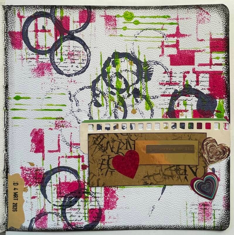 Ik heb altijd maar één doel voor ogen bij het werken in mijn Art- Journal en dat is dat ik me laat leiden door de vraag; wat gebeurt er als ik ... doe? En dan ga ik dat proberen...